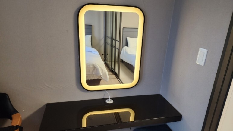 요거 전원을 연결하면 화장대 주변에 불이 들어온다.