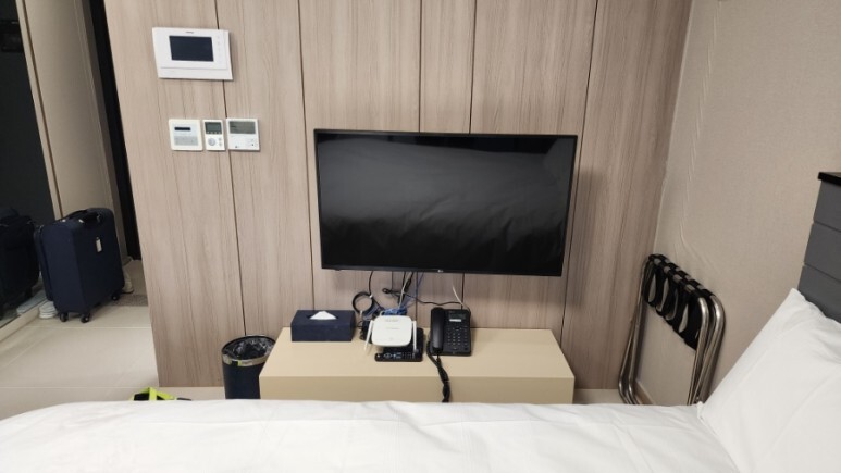 벽면에는 40인치쯤 되어 보이는 TV가 달려있다.